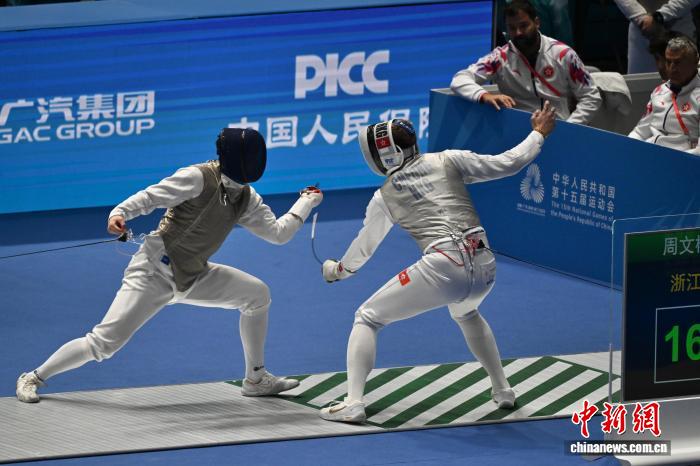 图为喷鼻港选脚蔡俏彦(左)对于阵浙江队选脚许鸿斌。记者 李志华 摄